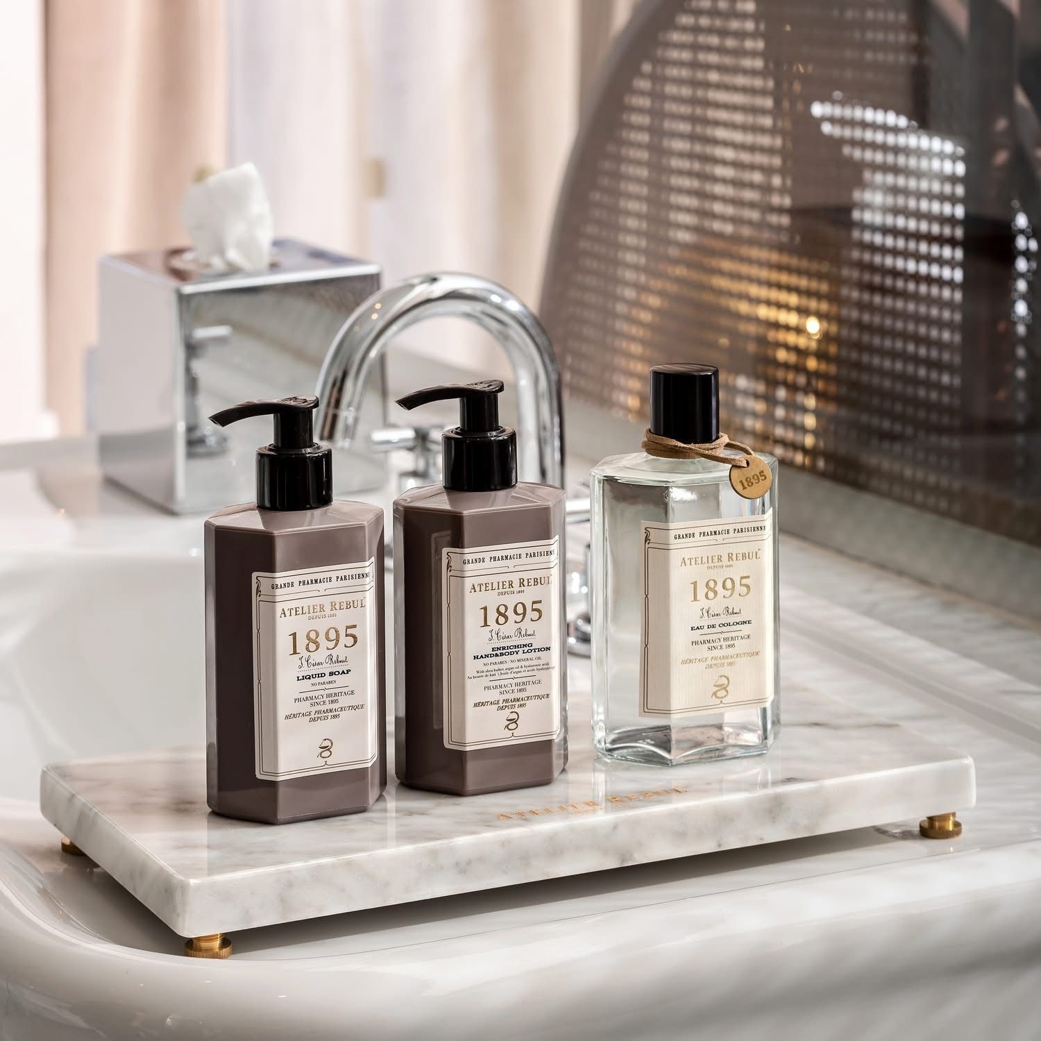 De 1895 Collectie eert onze oorsprong, geïnspireerd door genezende planten en bloemen uit 130 jaar oude apotheekrecepten. Het parfum opent met frisse citrus, gevolgd door opwekkende kardemom, rabarber en neroli, en eindigt met kalmerende houtnoten. Het symbool van gezondheid en farmacie: de iconische Hygies koffer.